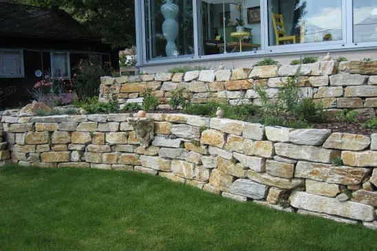 In den Fugen der Trockenmauern können Polsterstauden gepflanzt werden. Stützmauern sind bis zu zwei Meter Höhe je nach Material möglich.
